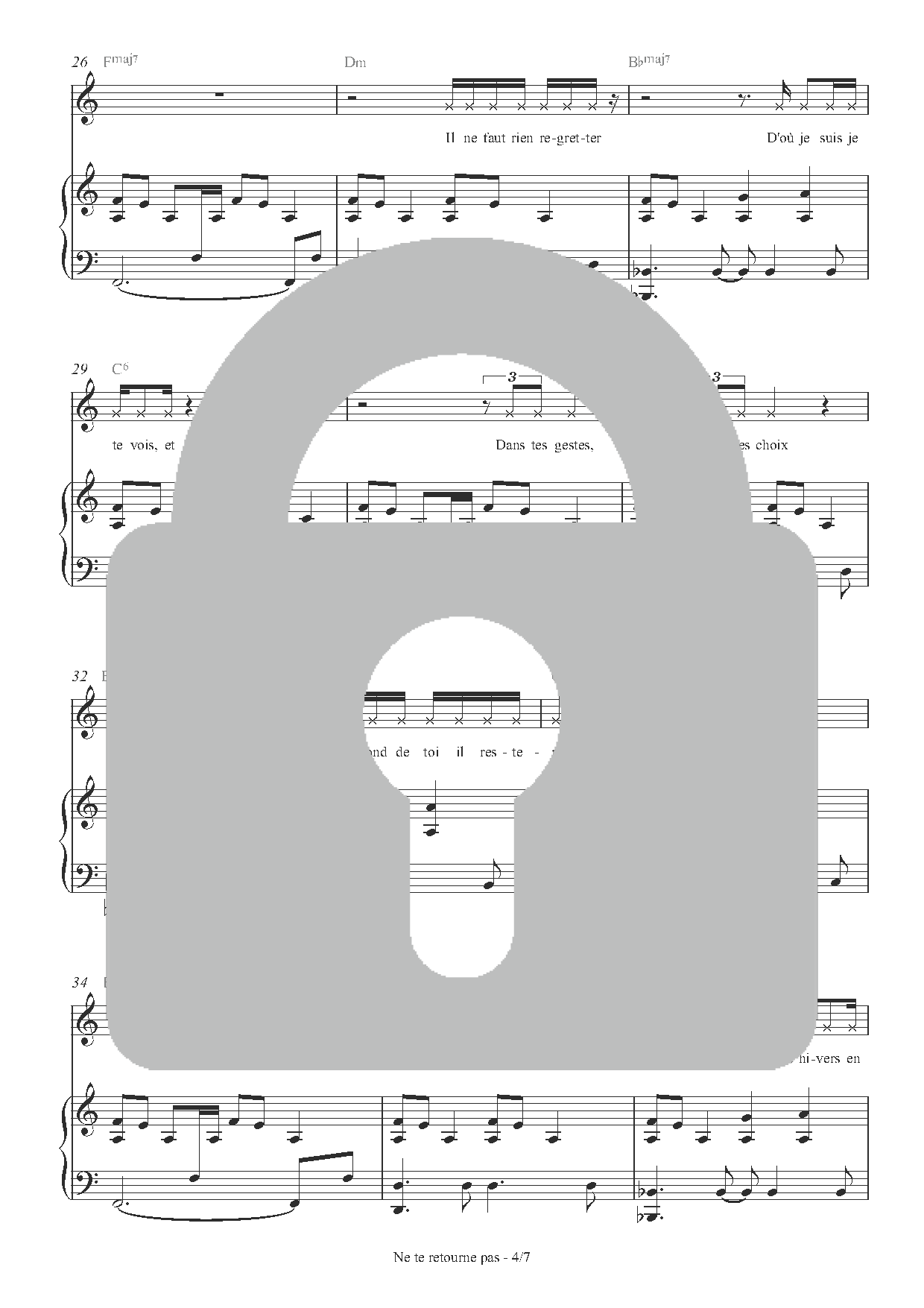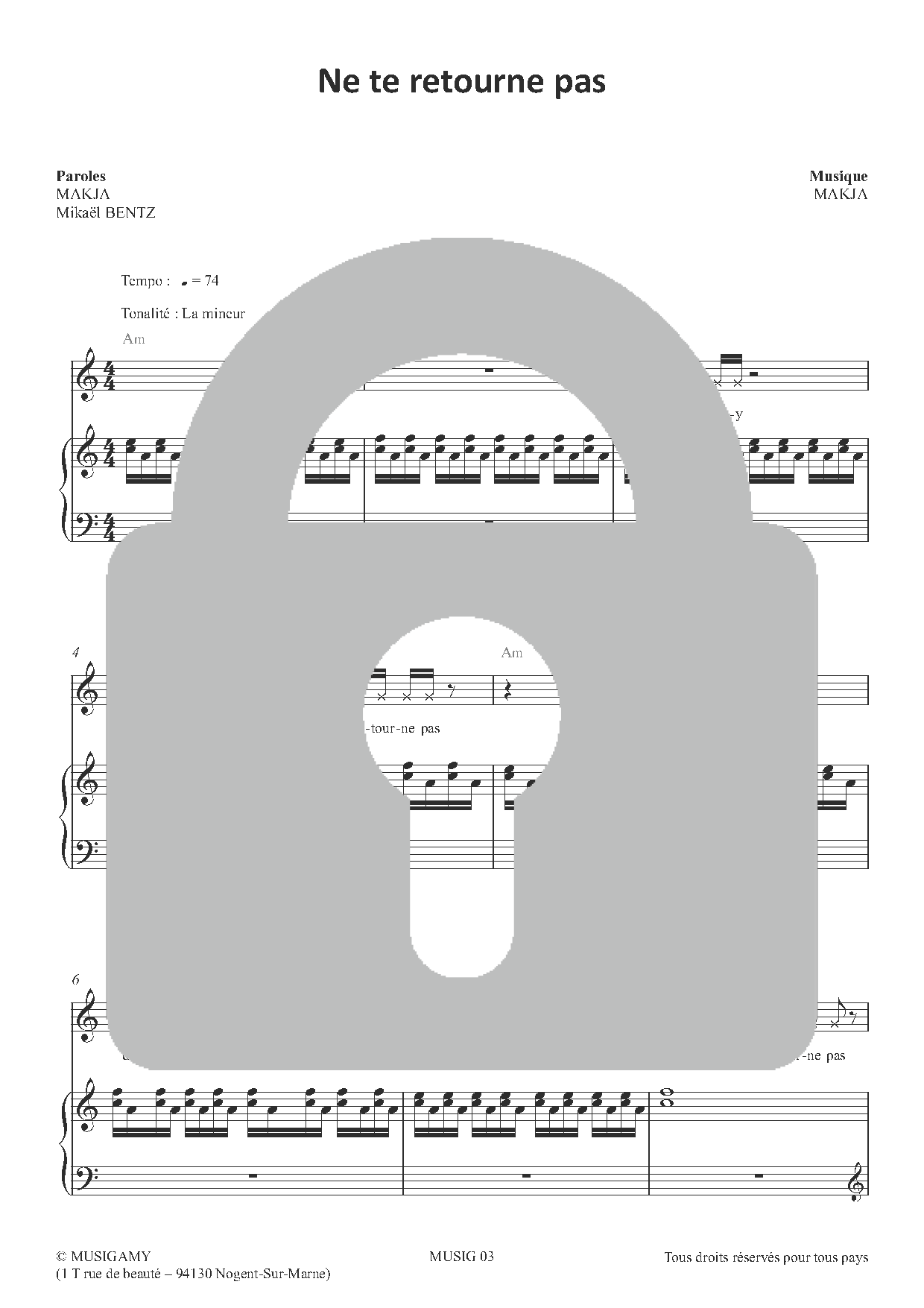 Découvrez dès maintenant la partition du titre Ne te retourne pas de Makja (extrait de l’album Ne te retourne pas), en version Piano/Chant/Accords. Partition digitale au format PDF téléchargeable/imprimable.