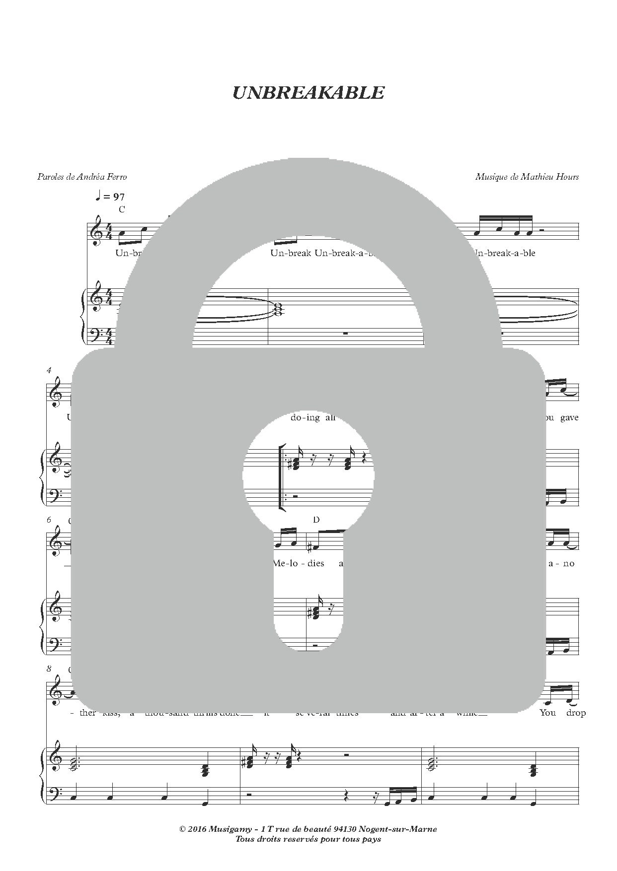 Découvrez dès maintenant la partition du titre Unbreakable de So?Mash! (extrait de l’album ON MY OWN (EP)), en version Piano/Chant/Accords. Partition digitale au format PDF téléchargeable/imprimable.
